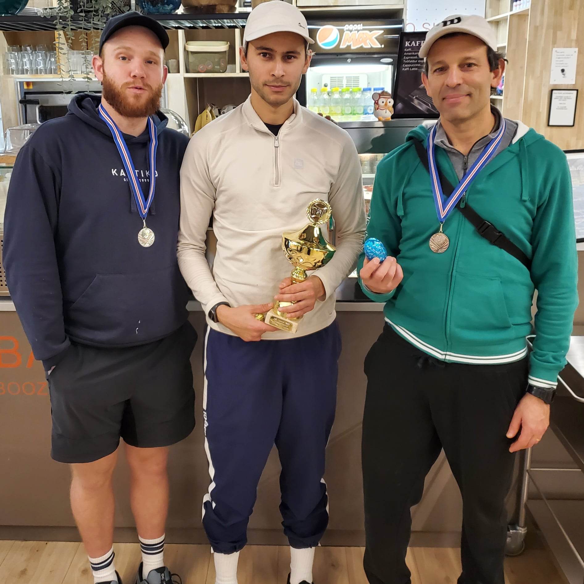 Garima og Rafn Kumar sigraði í tvíliðaleikskeppni á móti Patricia og Christopher Brass, 9-5. Og Freyr & Kári Pálssynir (Víking / TFK) sigraði Jonathan Wilkins og Thomas Beckers (HMR) upp á þriðja sæti í tvíliðaleik. Fleiri úrslit er hægt að skoða hér – TSÍ (100 stig) Vormót 2023