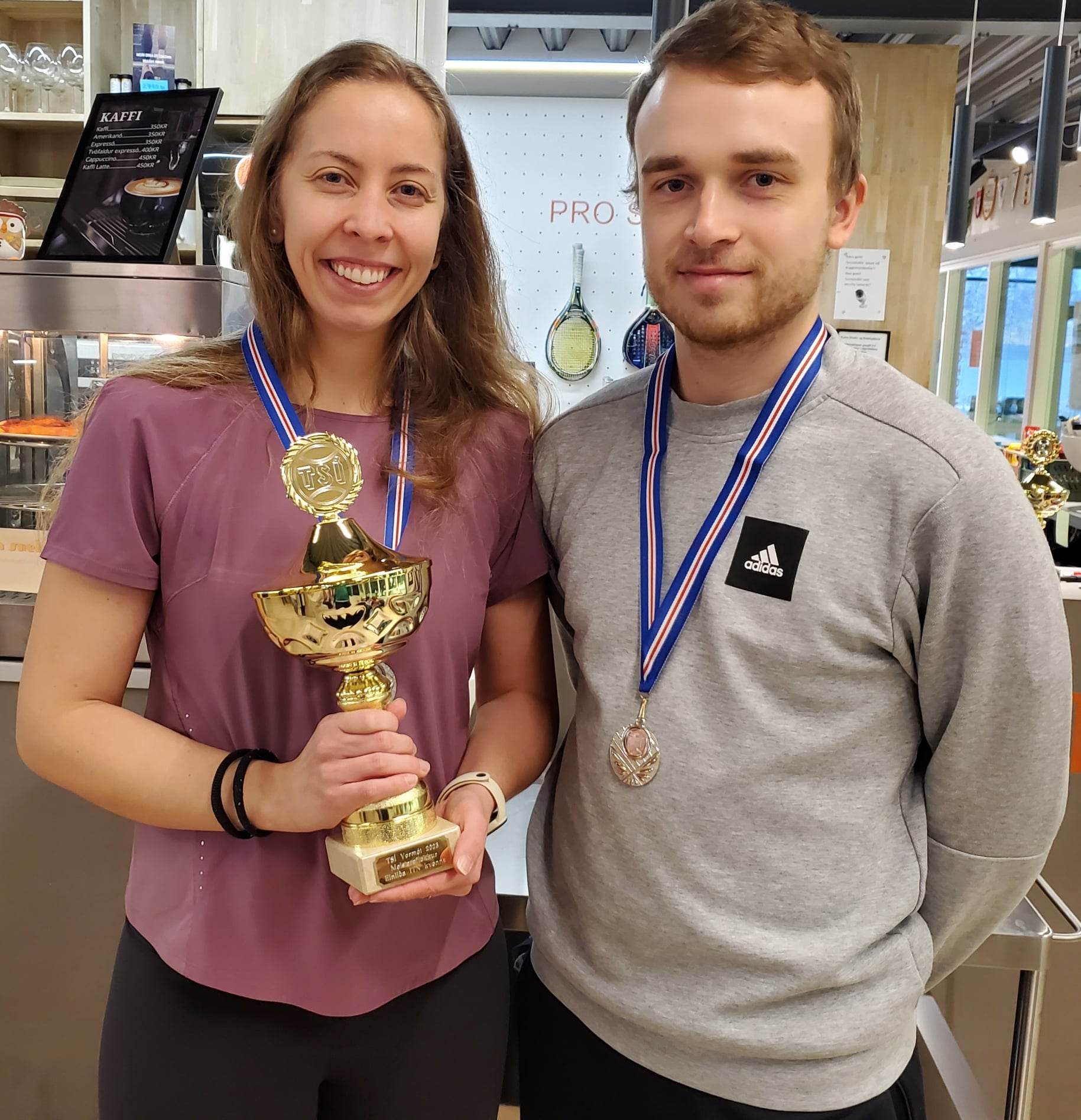 Emilía Eyva Thygesen (Víking) og Raj K. Bonifacius (Víking) höfnuðu í þriðja sæti í meistaraflokk kvenna og karla í einliðaleik.