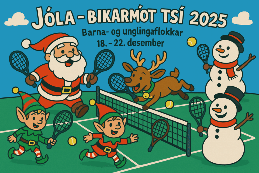 Jóla-Bikarmót TSÍ 2025 – mótskrá Tennishöllin í Kópavogi, Dalsmarí 13, 201 Kópavogur Börn-, og unglinga flokkar, 18. – 22. desember & Meistara- og öðlinga flokkar, 27.-30. desember MINI TENNIS keppni verður laugardaginn, 20. desember frá kl. 12.30-14 á bláa vellina KEPPNISFYRIRKOMALAG (Börn, og unglinga flokkar):
